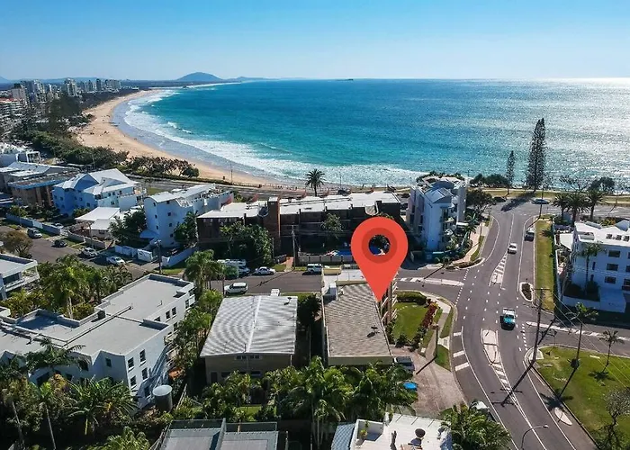The beachfront 80 m² Alex Headland Unit Views To The Ocean Apartment Alexandra Headland provides swift access to various city landmarks, such as Alexandra Headland Beach, located only a 7-minute walk away.
